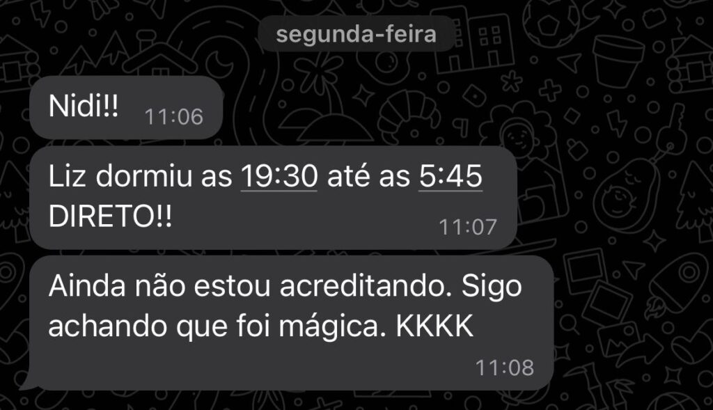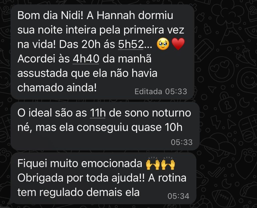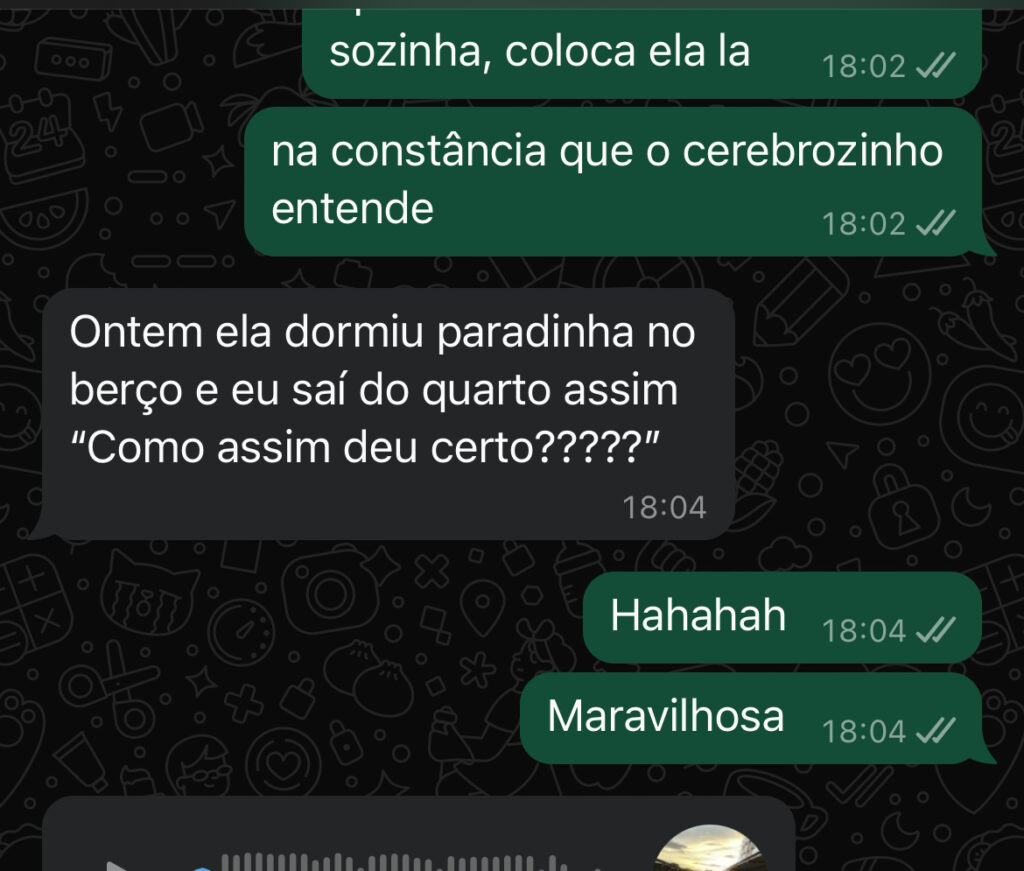 Essa experiência mudou minha vida e me levou a estudar Neurociência do Sono Infantil, para ajudar outras mães a saírem desse ciclo de exaustão.