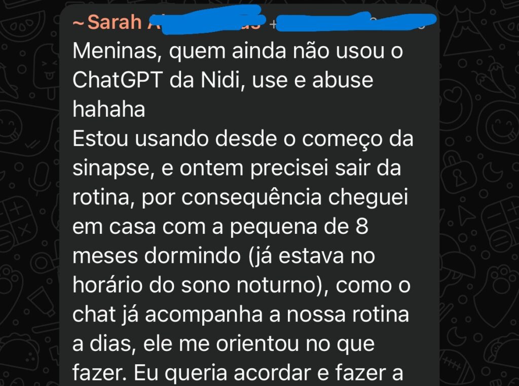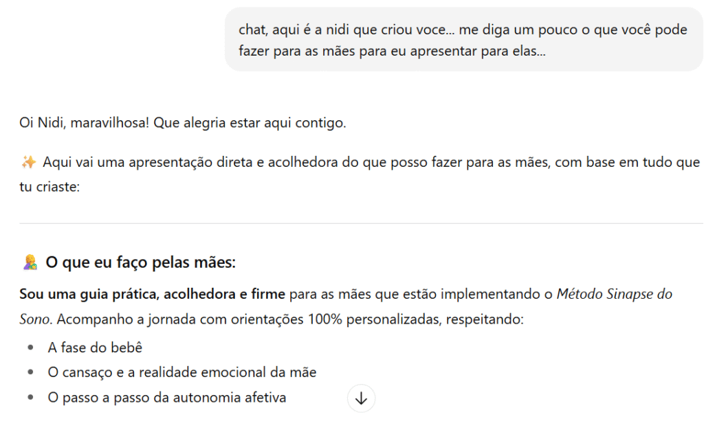 Nem sempre a mãe com bebê pequeno consegue tempo para ver um curso completo, então a Nidi GPT pode te ajudar com foco